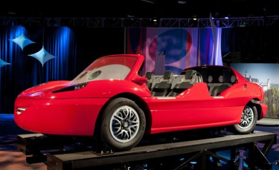 Coming to Disney California Adventure park in summer 2012 is Cars Land, featuring the E-ticket attraction Radiator Springs Racers. This shiny, red car – photographed at the 2011 D23 Expo – represents the vehicles guests will soon be “racing” around the track, through Ornament Valley and the town of Radiator Springs. The new attraction is one of three opening at Cars Land.